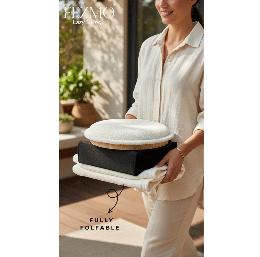 A smart solution for modern homes!, the Fezmo Foldable Pouffes offers seating, storage, and space-saving in one compact design. Use it as an extra seat, store your daily essentials inside, and fold it away when not in use.